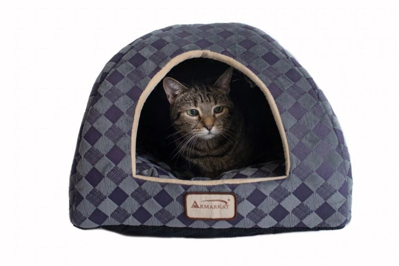 Armarkat Purple/Gray Check Pattern Cat Bed