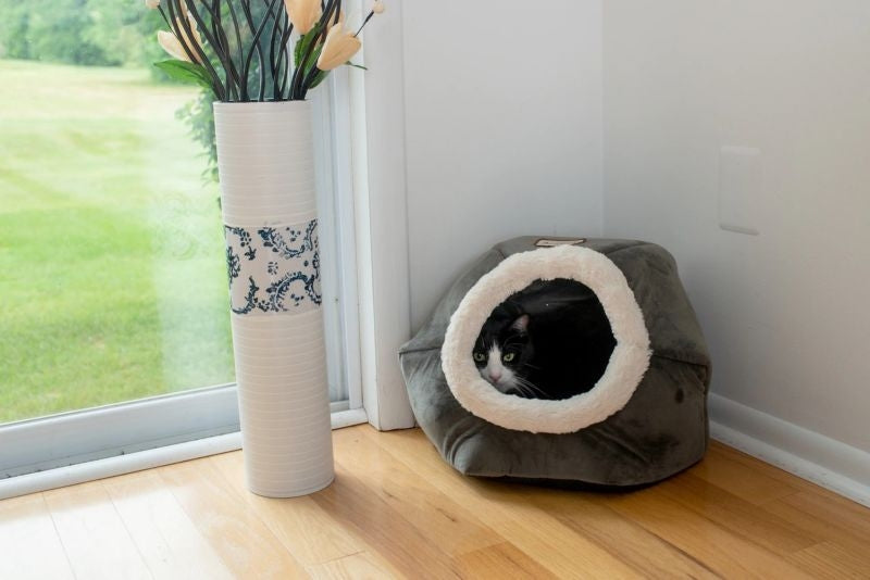 Your little lion's den. Catslove to nap in warm, dark and hidden spots. They enjoy a little bit of privacy, especially as they’re snoring away! Hideaway beds provide a cozy and safe place for your cat to hide and sleep. Give your kitty something to purr about as he or she sleeps peacefully surrounded in coziness and softness.